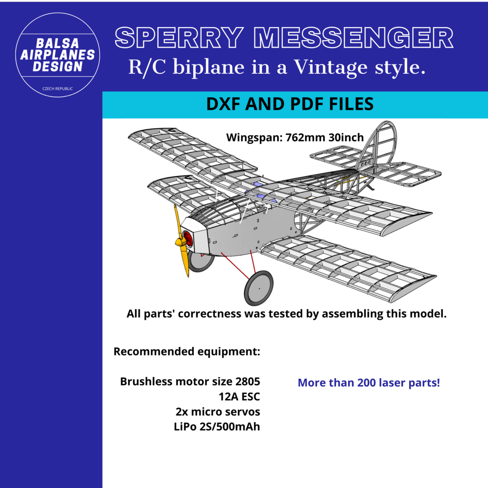 Data files DXF and PDF for RC airplane SPERRY MESSENGER.